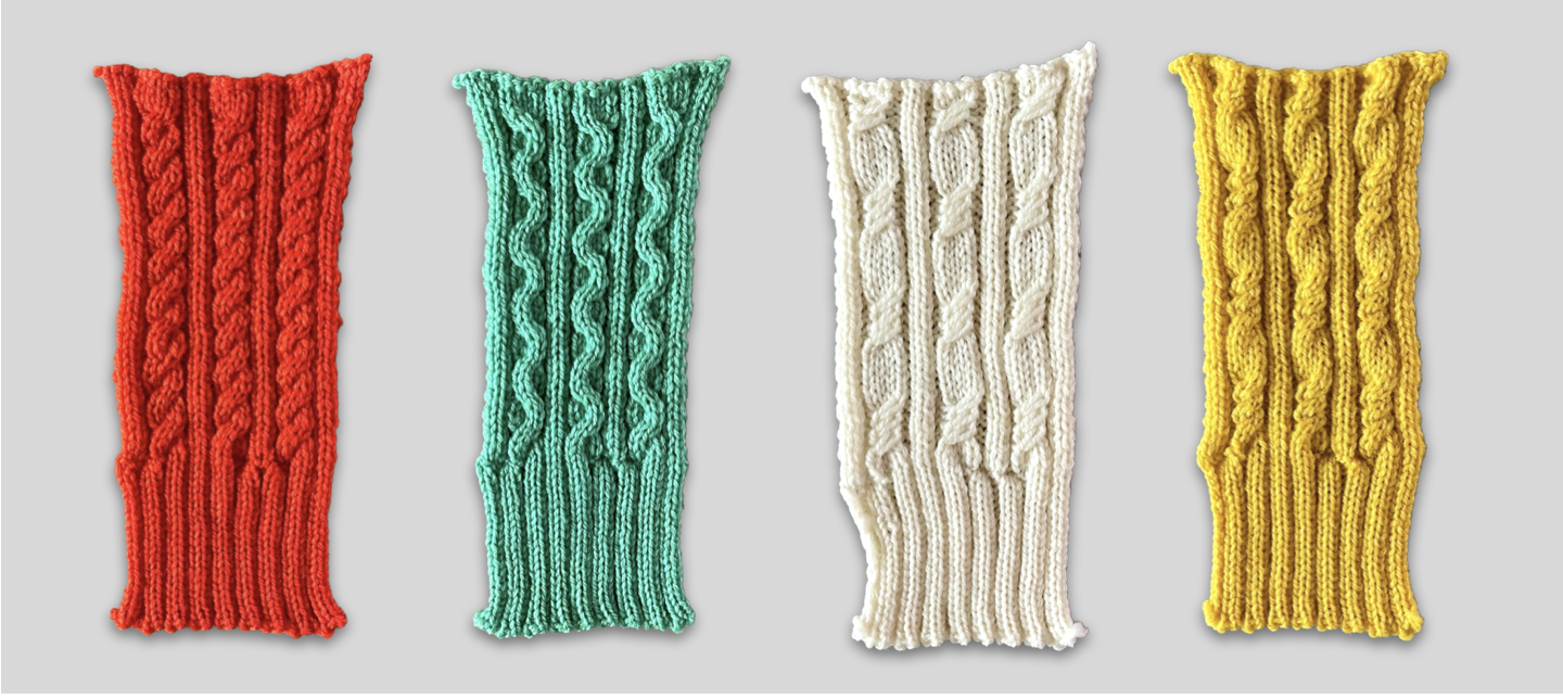 We will start with the basic 2-over-2 cable, and explore how to create variations by adjusting direction, frequency, and needle transfers. Then we will move on to bigger cables, like the 3x3, and making a cable appear wider by cabling progressively across the fabric.