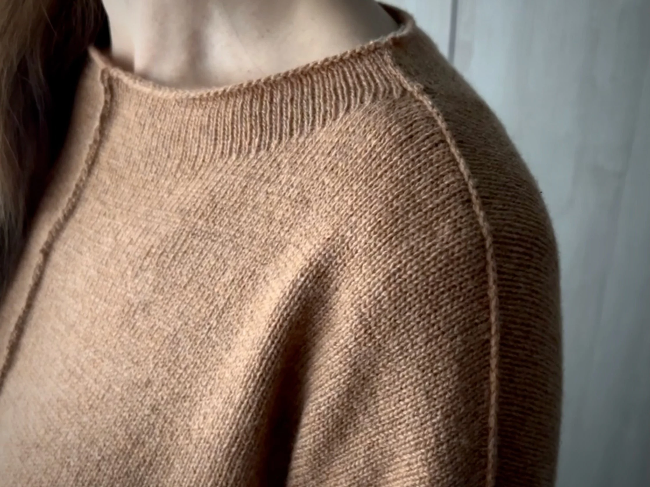 Because of the relaxed silhouette, the left and right sides of the front panel are knit separately, and joined together in Week 4.